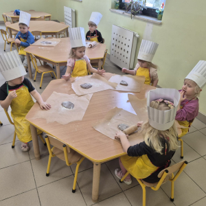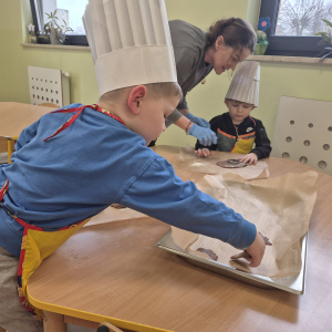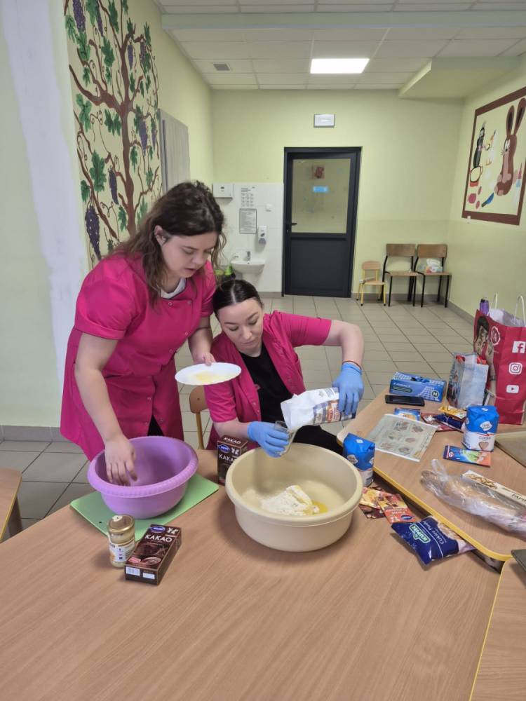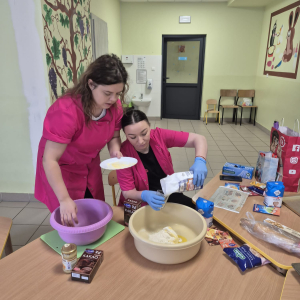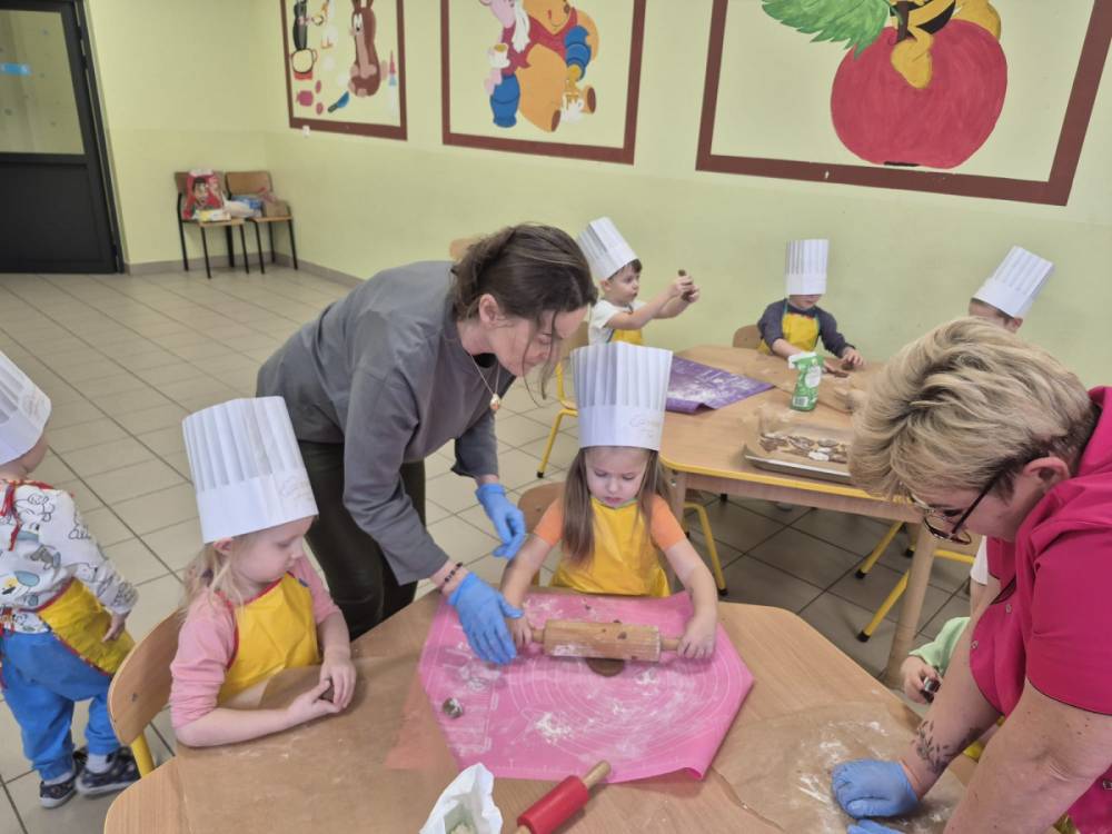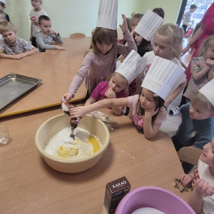 podczas pracy w kuchni. Następnie przystąpiły do wspólnego przygotowywania ciasta,