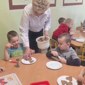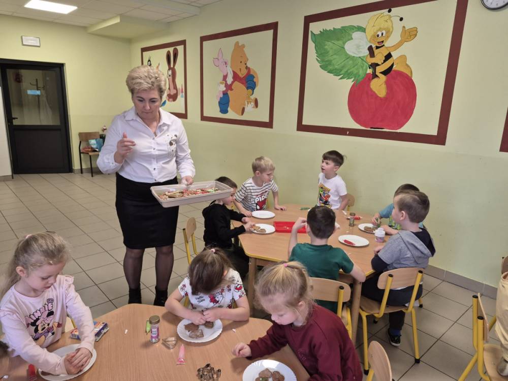 było wspólne upieczenie pierników przez dzieci oraz ich sprzedaż rodzicom i gościom
