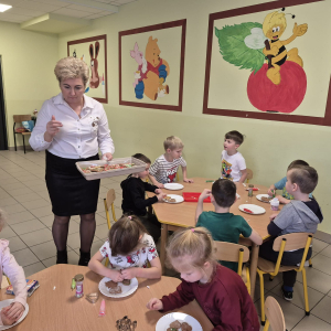 Finałem akcji był kiermasz pierników, który odbył się w holu przedszkola. Stoisko zostało