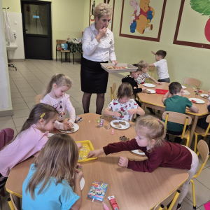 udekorowane lukrem i kolorowymi posypkami. Dzieci wykazały się ogromnym