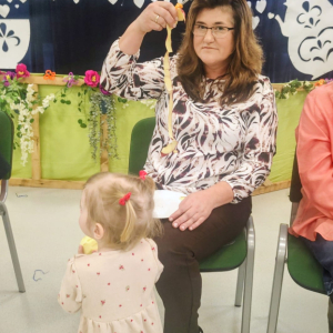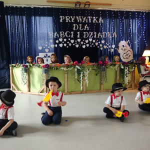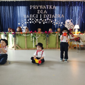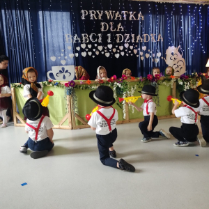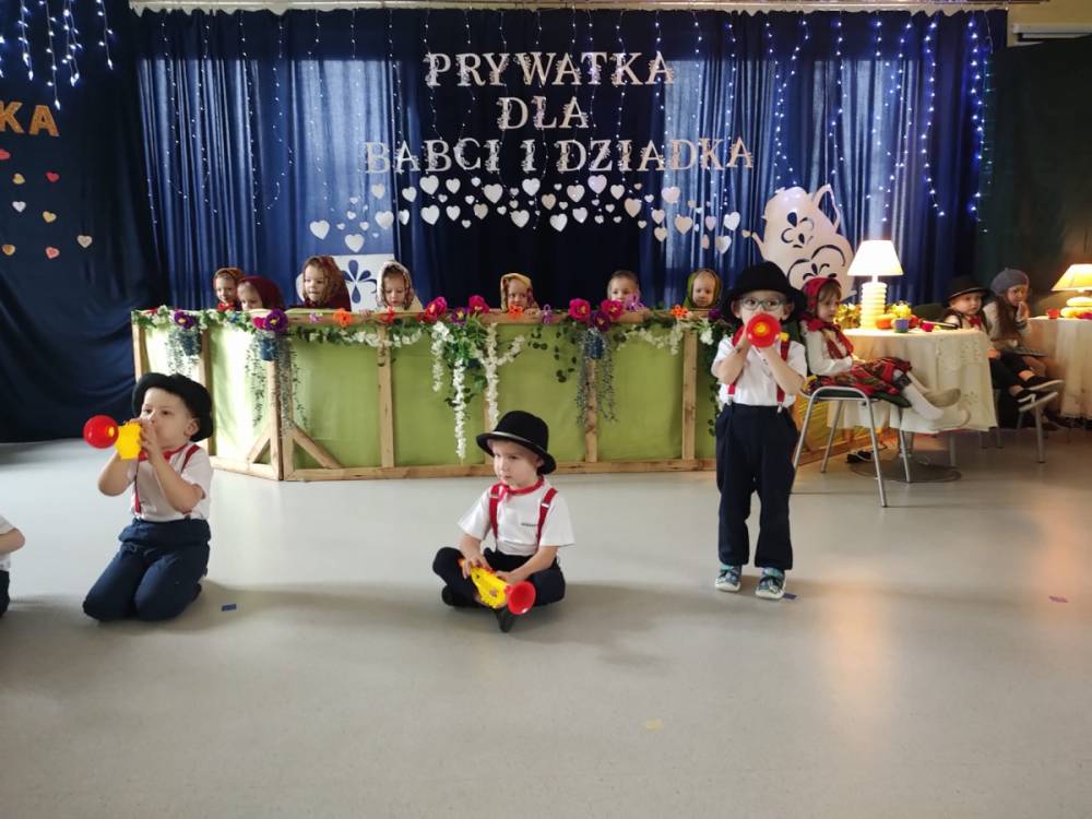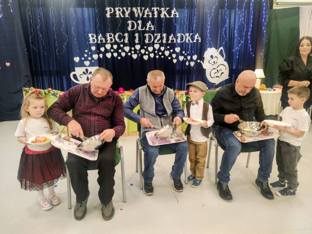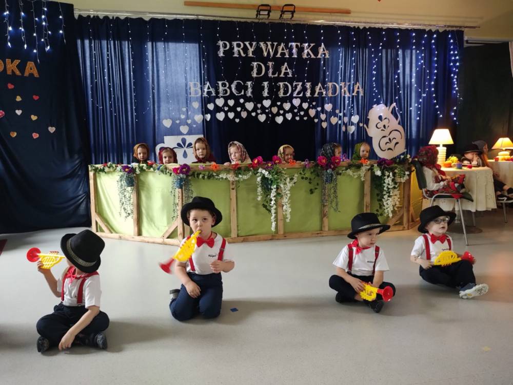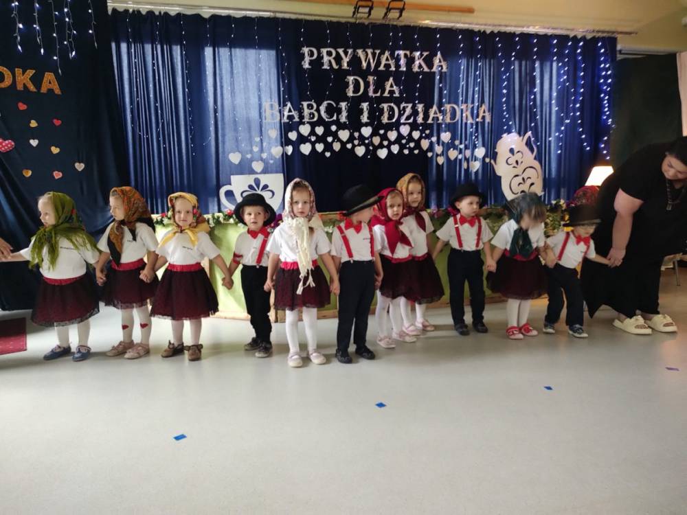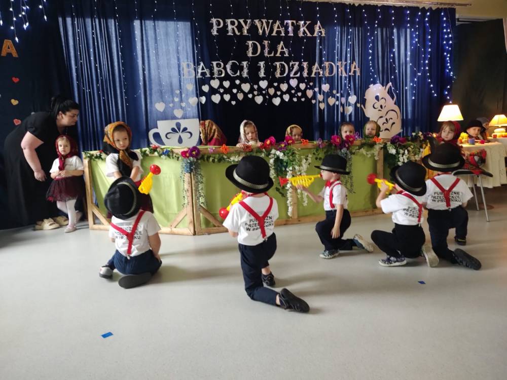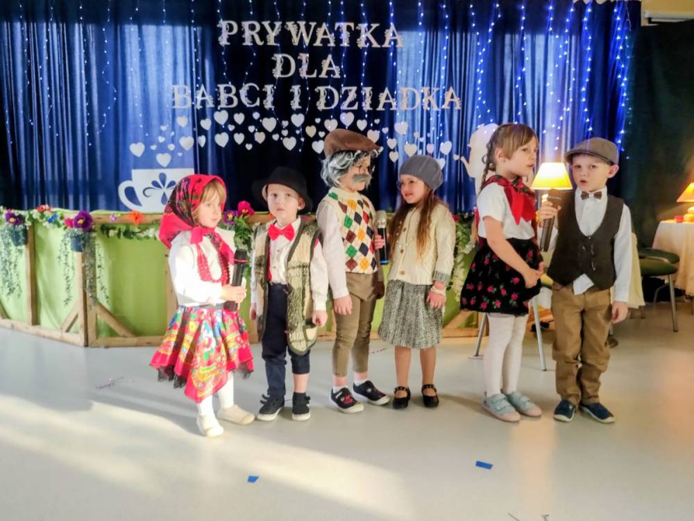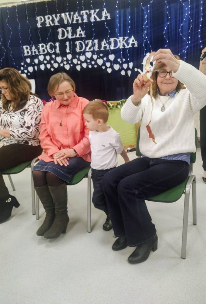 Dzień Babci i Dziadka był wyjątkowym wydarzeniem, podczas którego dzieci z naszego przedszkola miały okazję wyrazić swoją miłość i wdzięczność dla swoich ukochanych babć i dziadków. Przygotowaliśmy specjalny program artystyczny, w którym maluchy zaprezentowały wiersze, piosenki oraz krótkie przedstawienia, aby uczcić ten szczególny dzień. Po występach zaprosiliśmy wszystkich gości na wspólny poczęstunek i miłe rozmowy w rodzinnej atmosferze. To była doskonała okazja, by spędzić czas razem, ciesząc się bliskością i radością. Serdecznie dziękujemy wszystkim za wspólne świętowanie!