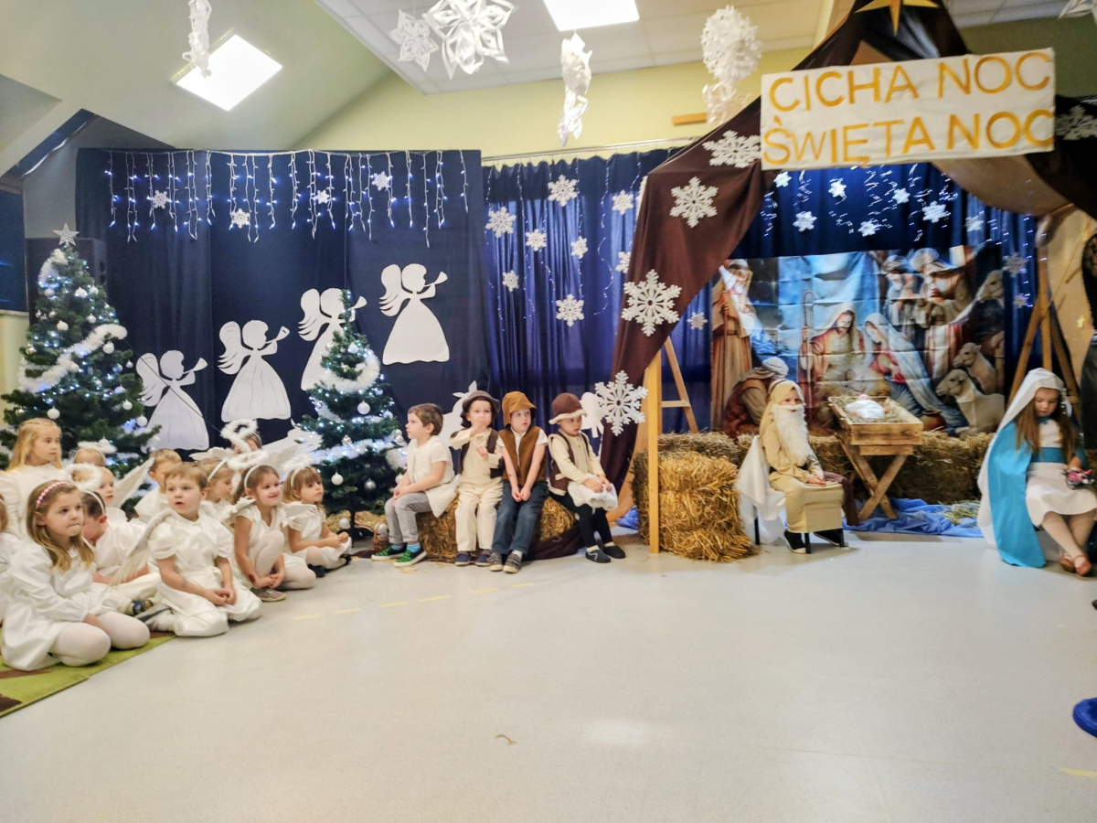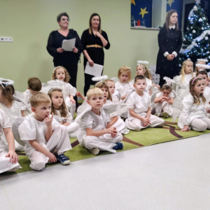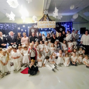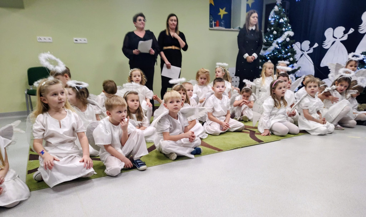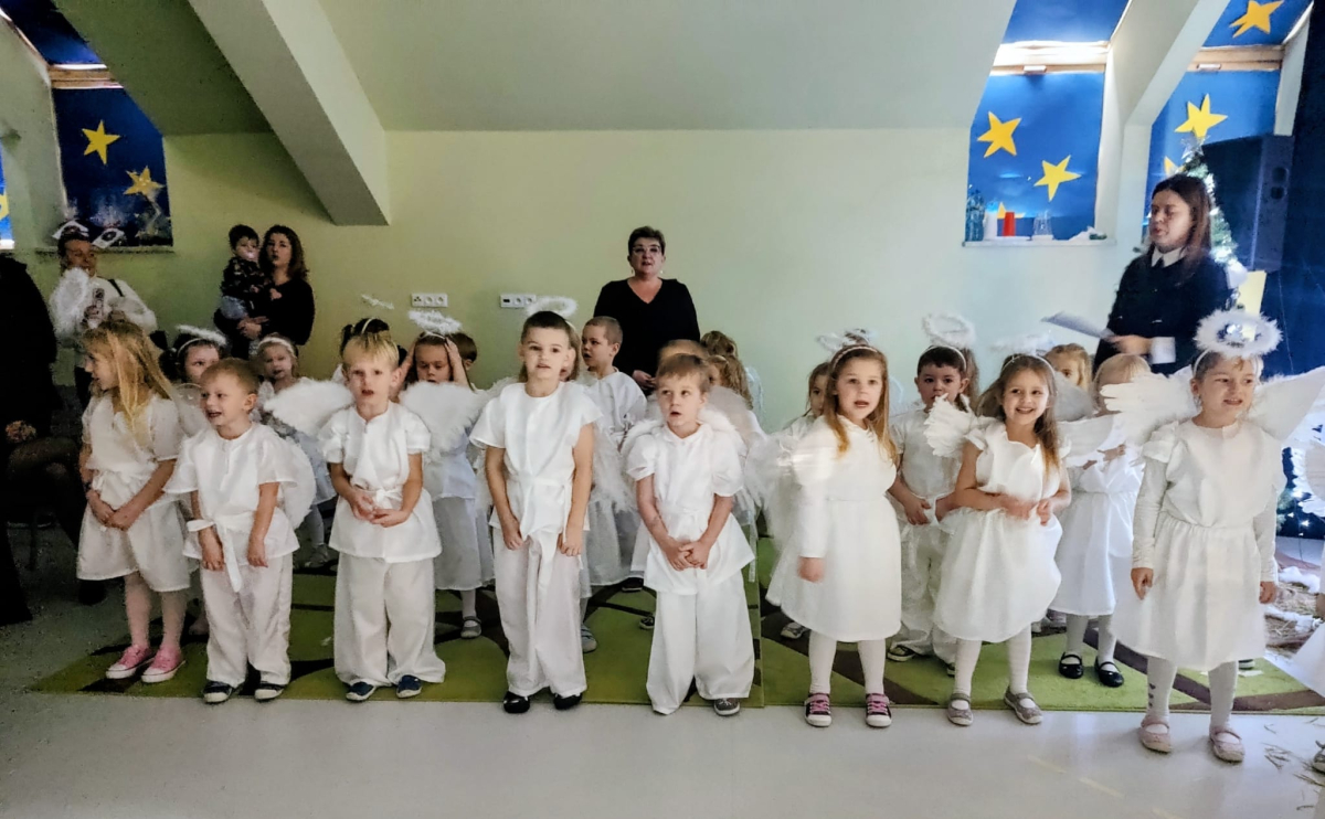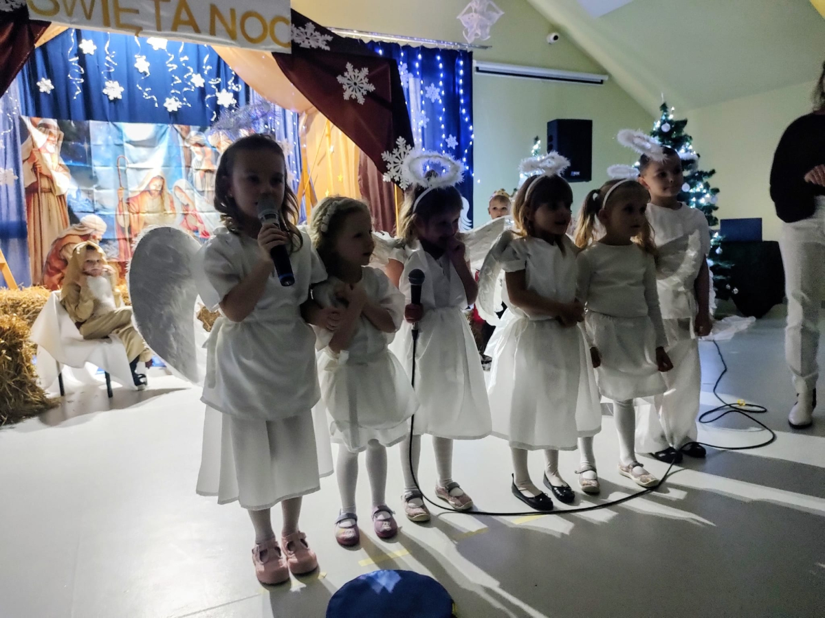Mali artyści zachwycili publiczność pięknymi kolędami, recytacją wierszy oraz białymi strojami. Występ był pełen radości, wzruszeń i uśmiechów, a nagrodą dla dzieci były gromkie brawa oraz słowa uznania od zgromadzonych gości.