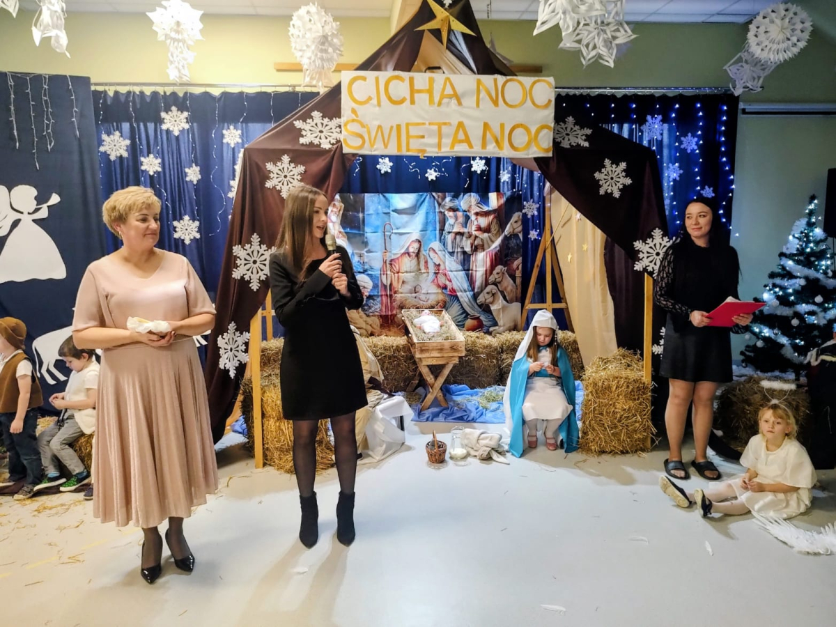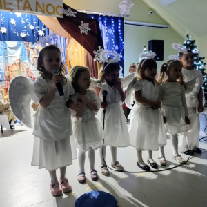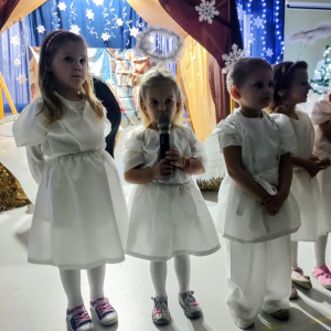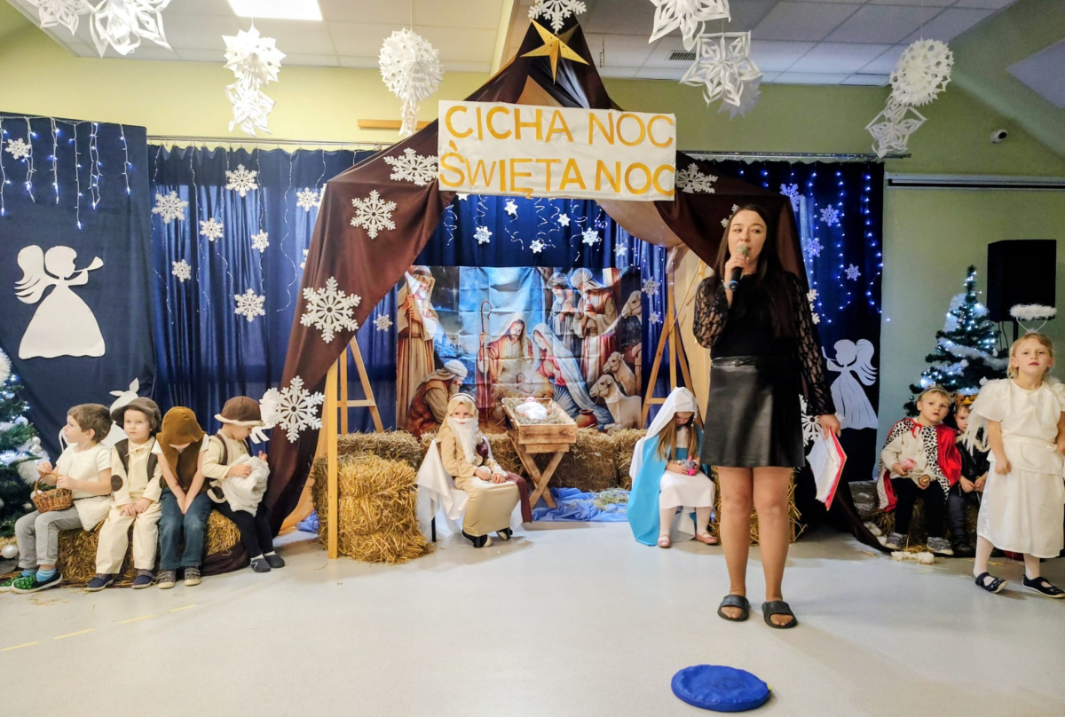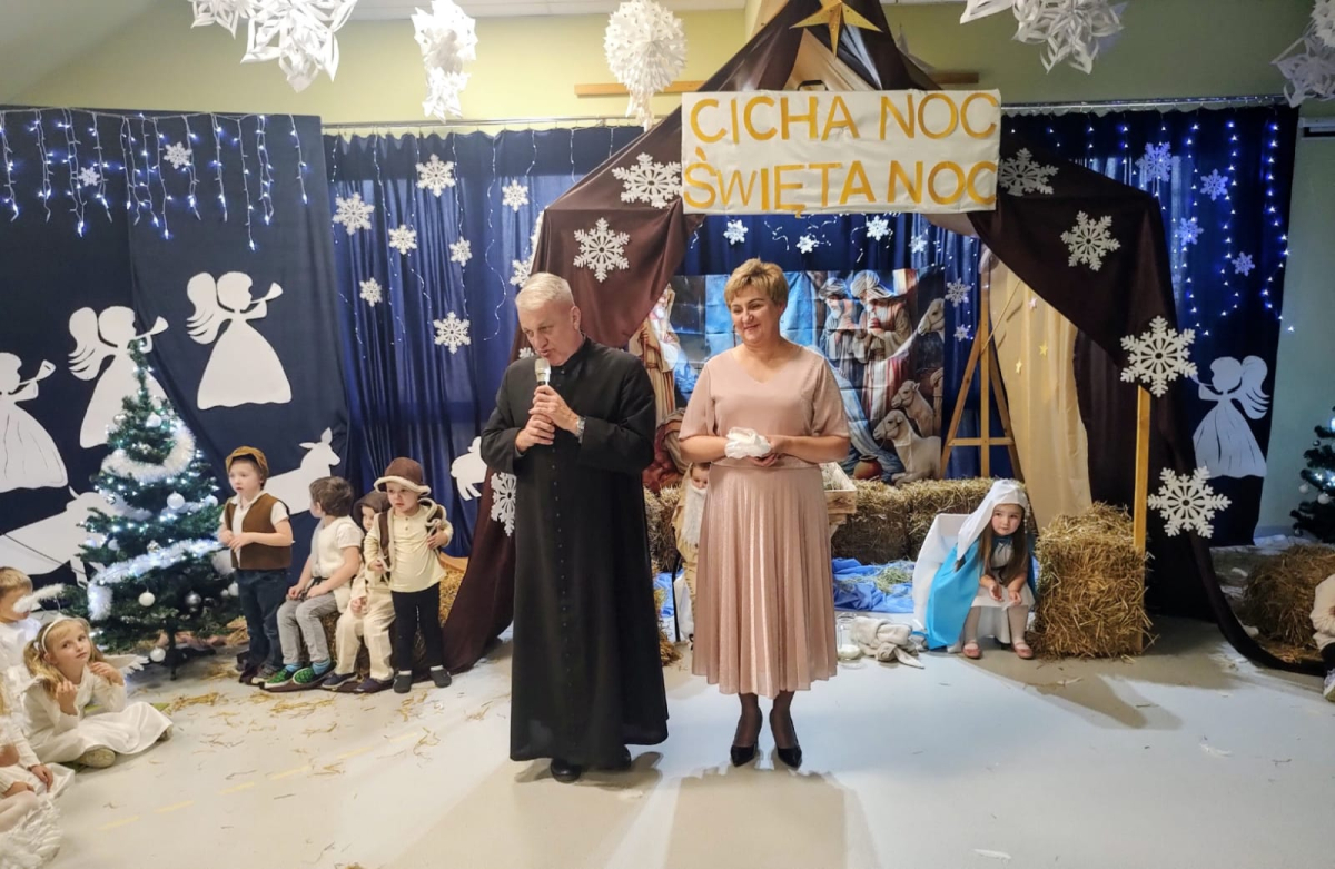 Mali artyści zachwycili publiczność pięknymi kolędami, recytacją wierszy oraz białymi strojami. Występ był pełen radości, wzruszeń i uśmiechów, a nagrodą dla dzieci były gromkie brawa oraz słowa uznania od zgromadzonych gości.