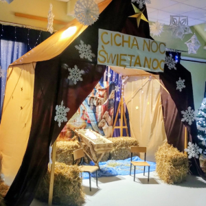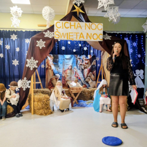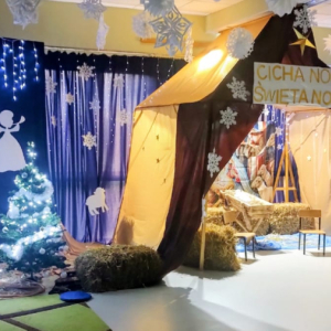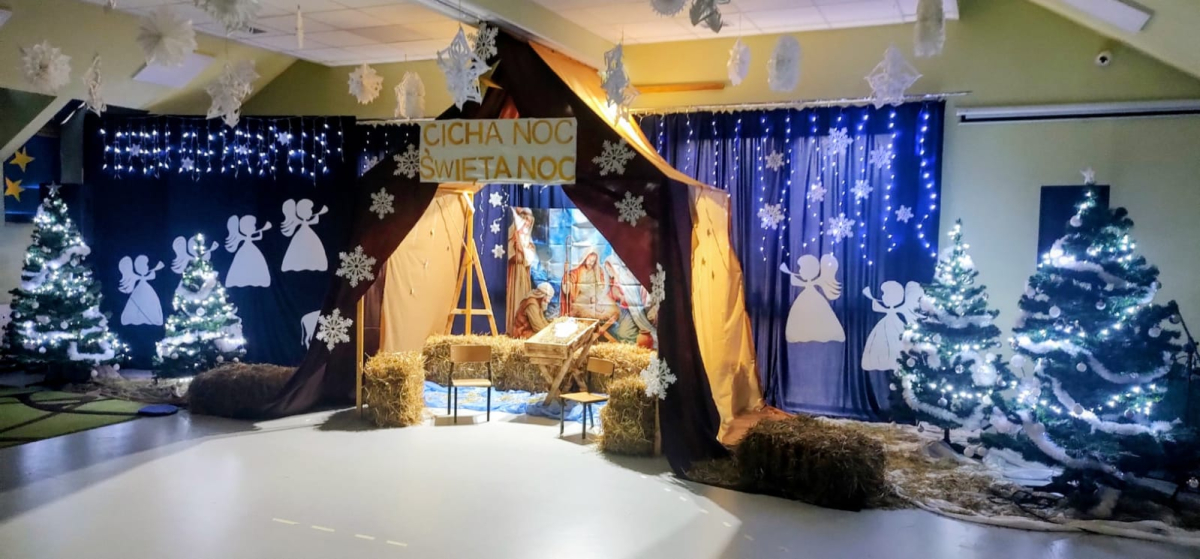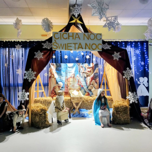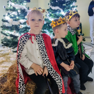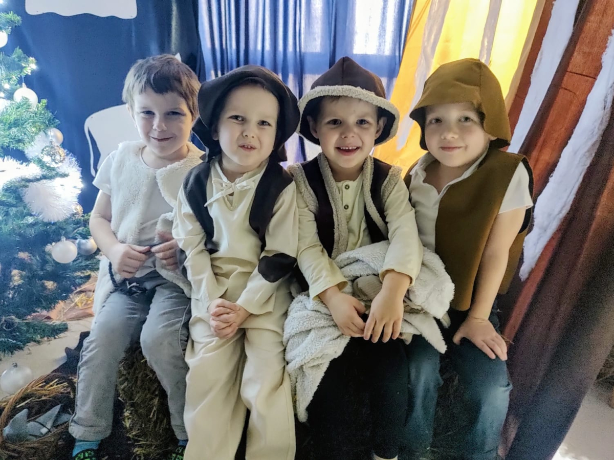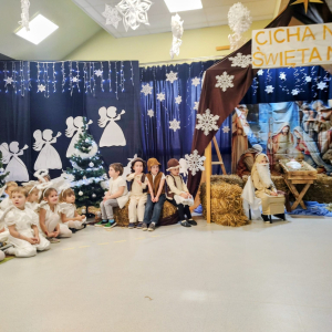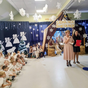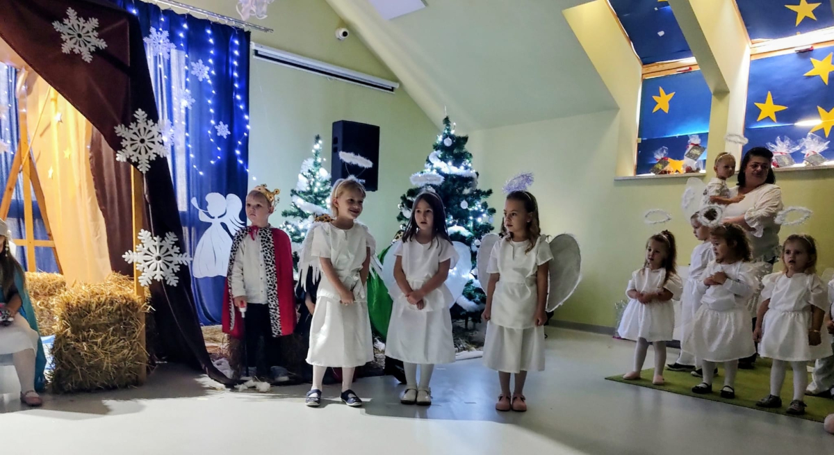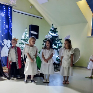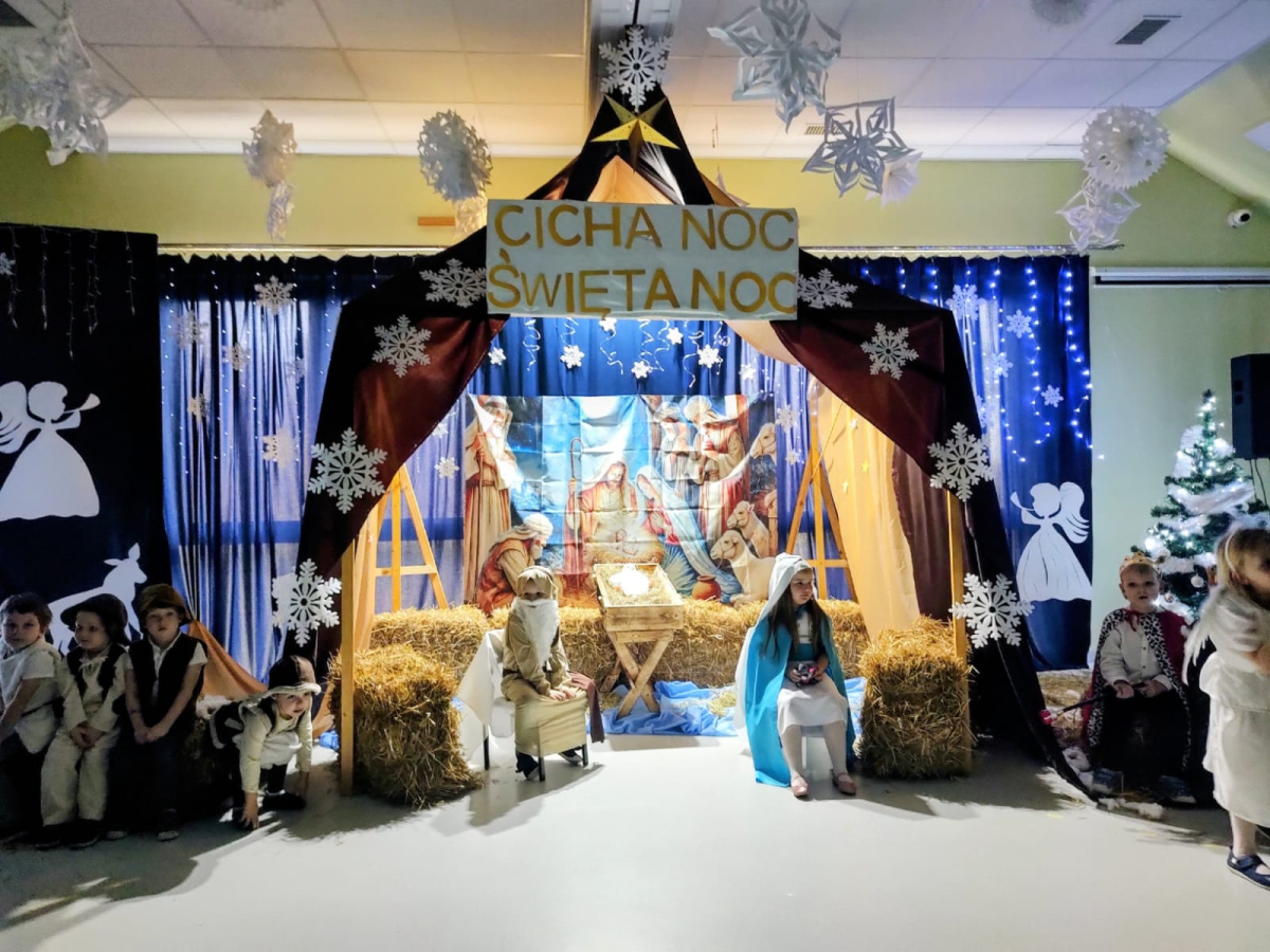 W naszym przedszkolu odbyły się wyjątkowe jasełka bożonarodzeniowe, które wprowadziły wszystkich w ciepłą, świąteczną atmosferę. Dzieci z ogromnym zaangażowaniem zaprezentowały przygotowane przedstawienie, wcielając się w role aniołków, pasterzy, Maryi, Józefa oraz innych bohaterów bożonarodzeniowej opowieści.